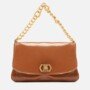 Statement style with everyday sophistication. The Large Chain Handle Bag With Crossbody features a bold metallic chain handle that contrasts beautifully with the slim leather strap, offering different ways to wear.